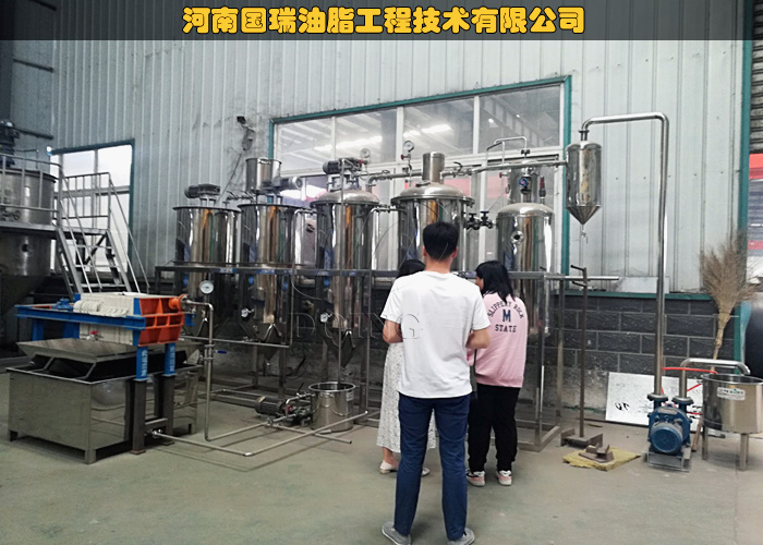 5月12日上午,杜经理陪同客户去往工厂进行实地考察,让客户近距离参观考察并详细讲解了我司工厂的“5吨/天小型大豆油压榨生产线设备”和“500千克/天的电加热精炼”设备的样机结构和设备特点等。